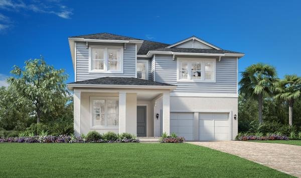 The Delray’s welcoming extended covered porch and inviting foyer open onto the beautiful dining room, offering views to the expansive great room and desirable covered lanai beyond. The well-designed kitchen overlooks a bright casual dining area, and is highlighted by a large center island with breakfast bar, plenty of counter and cabinet space, and roomy walk-in pantry. The magnificent primary bedroom suite is enhanced by dual walk-in closets and spa-like primary bath with dual vanities, large luxe shower, and private water closet. Central to a generous loft, secondary bedrooms feature ample closets and shared hall bath. Additional highlights include a versatile bedroom suite with closet and private bath off the foyer, convenient powder room and everyday entry, centrally located laundry, and additional storage.